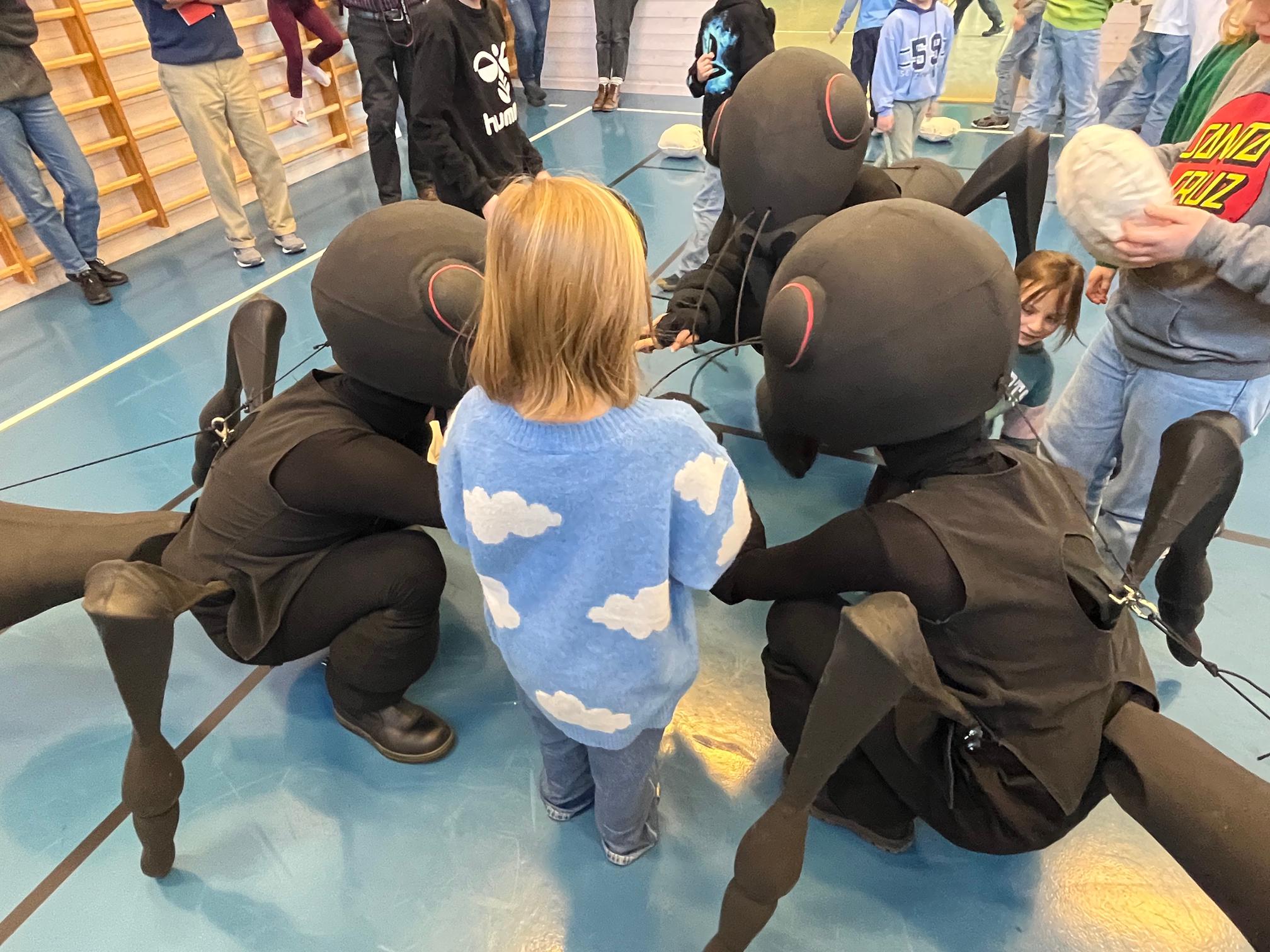 Hvilken retning arbeidet tar, preges av elevenes energi, innspill og dialog med hverandre, maurene og de hundrevis av "brødsmulene" som er i rommet.
