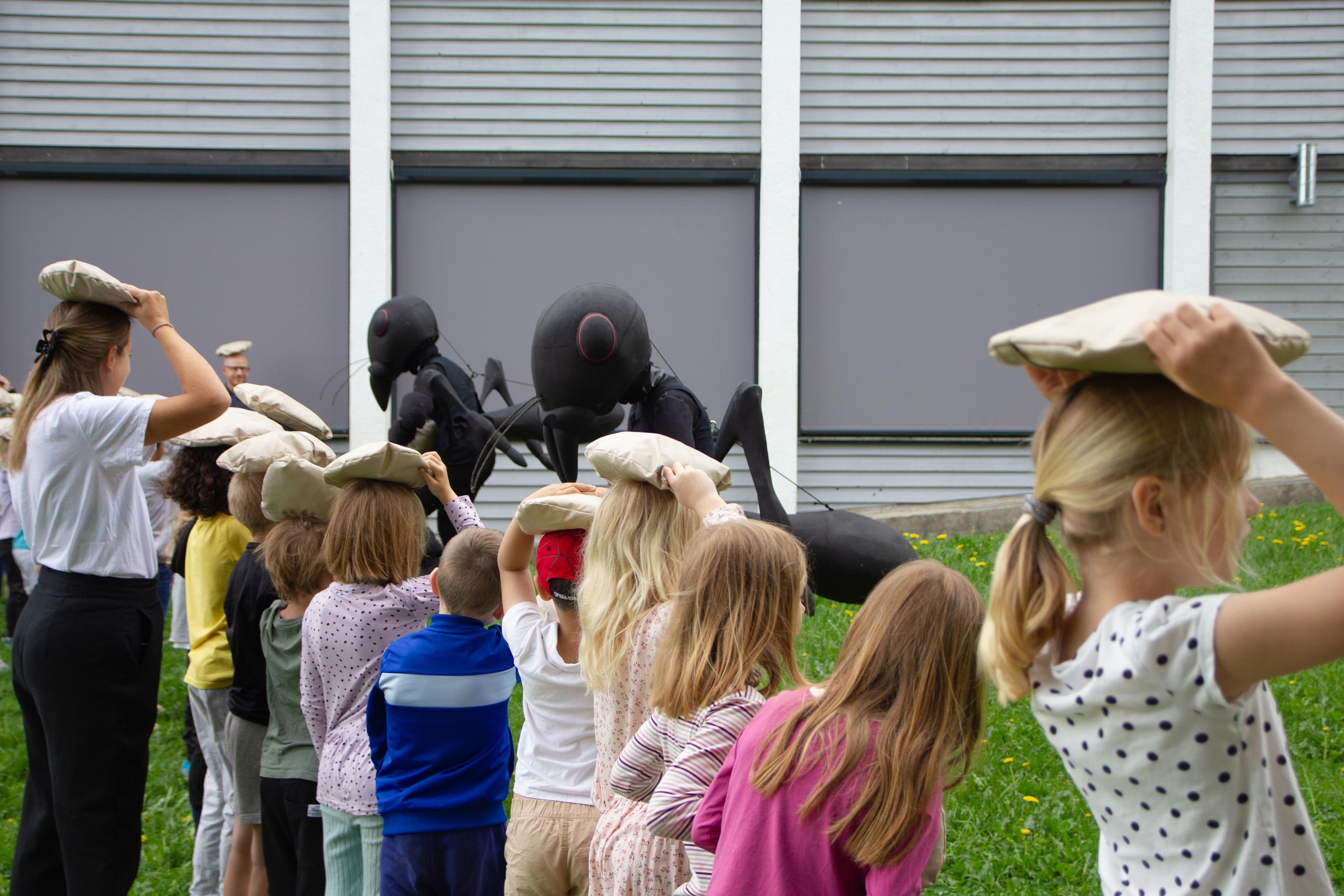 Denne uka var elever og lærere ved Ingeberg skole i Hamar begeistret over besøket. Barna samarbeidet med maurene om a å lage fine mønstre med smuler og gjenskape maurenes bevegelse.