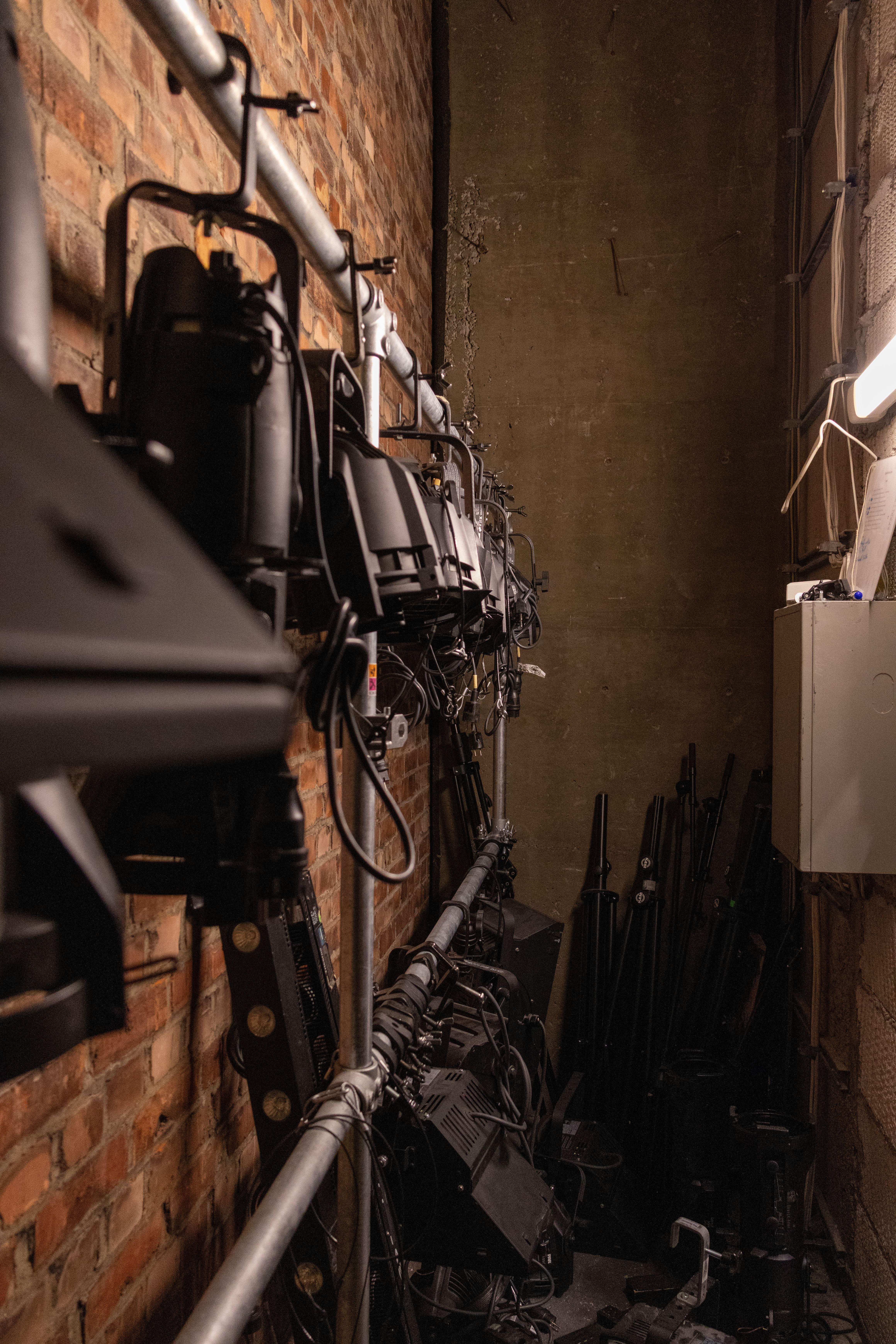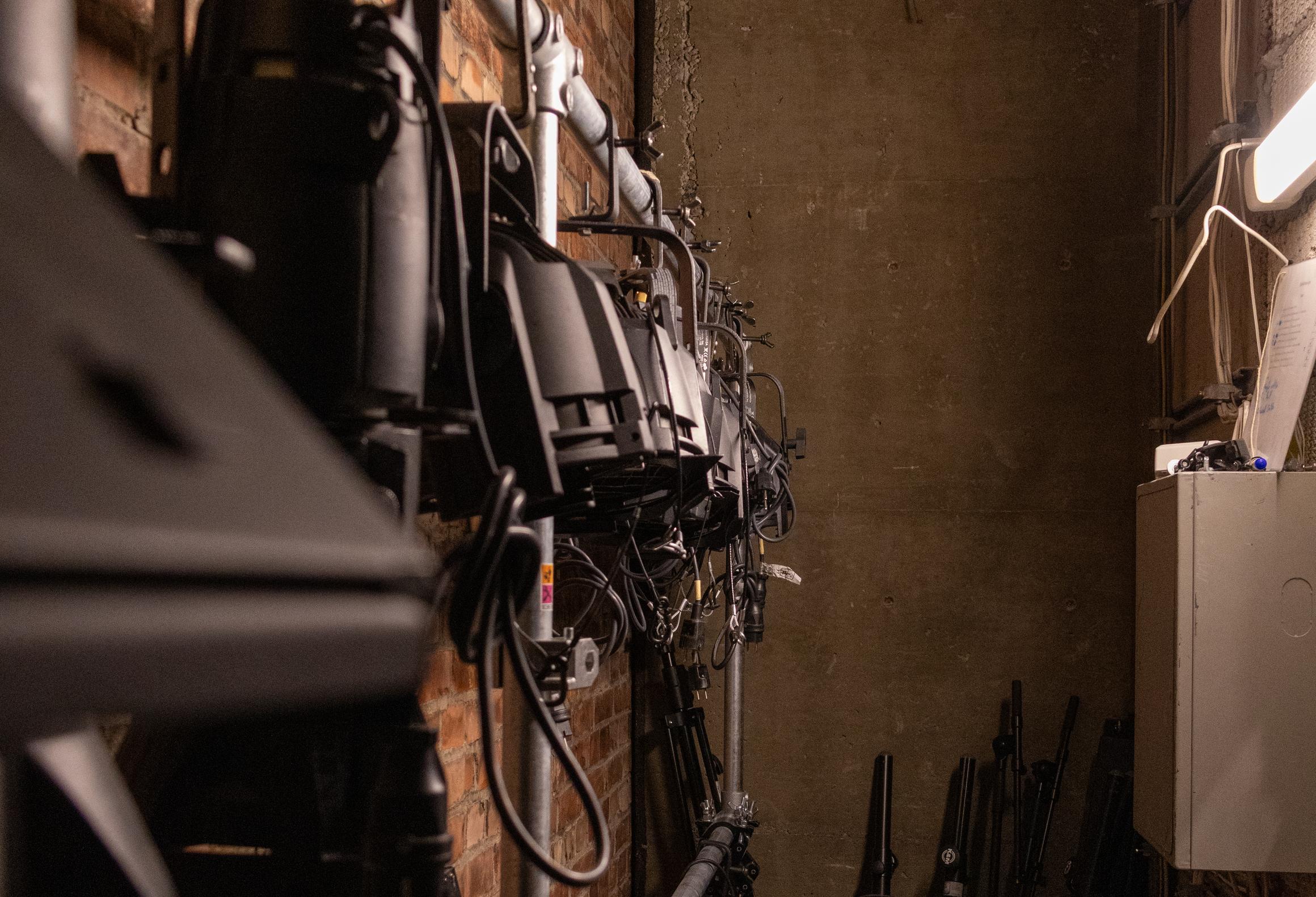 Rommet har god takhøyde, med plass til montering av scenografi og teknikk.